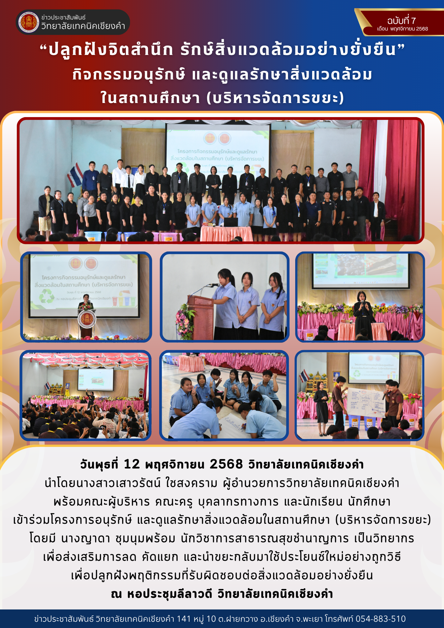 วันจันทร์ที่ 10 พฤศจิกายน 2568 วิทยาลัยเทคนิคเชียงคำ