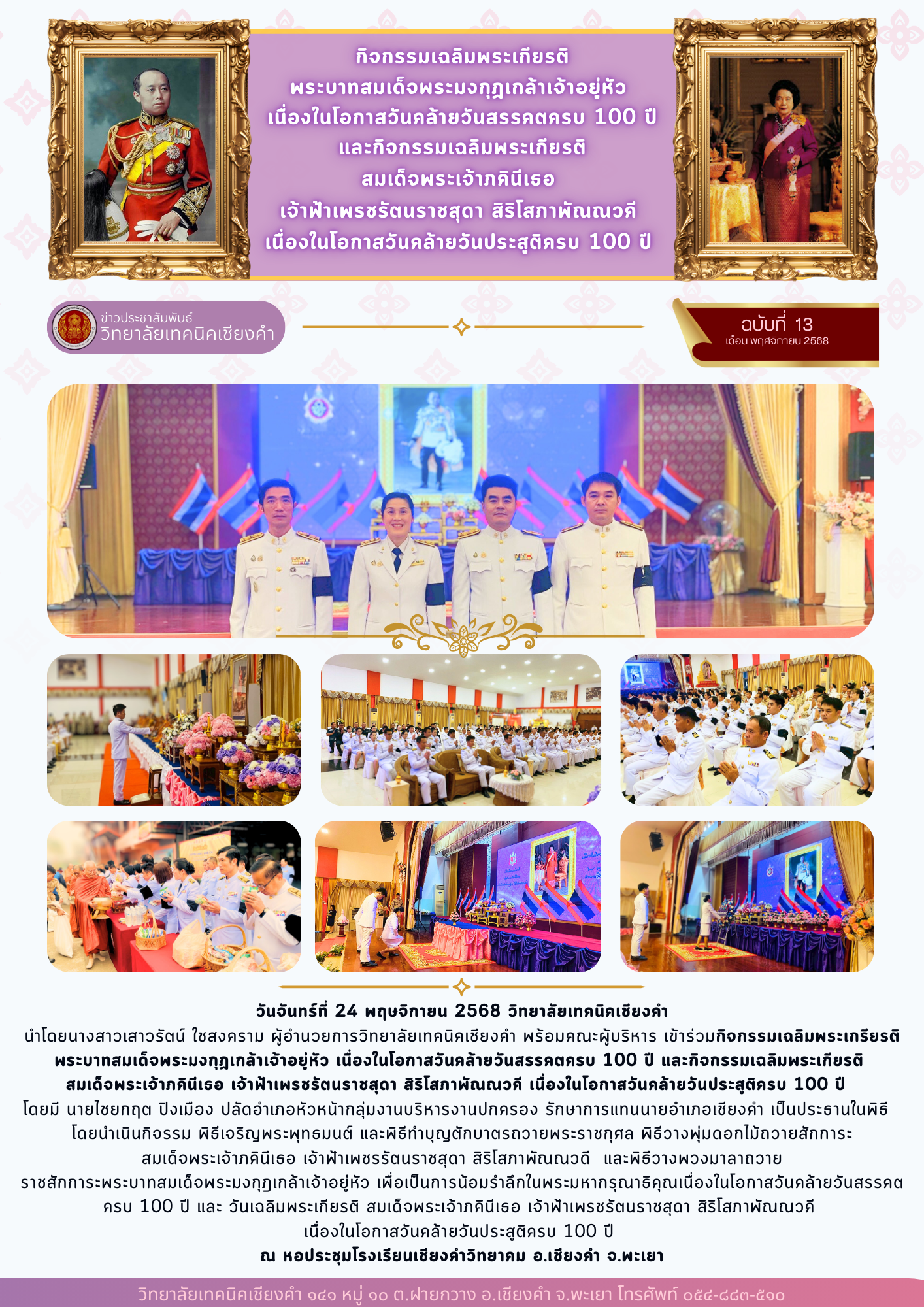 วันศุกร์ที่ 21 พฤศจิกายน 2568 วิทยาลัยเทคนิคเชียงคำ